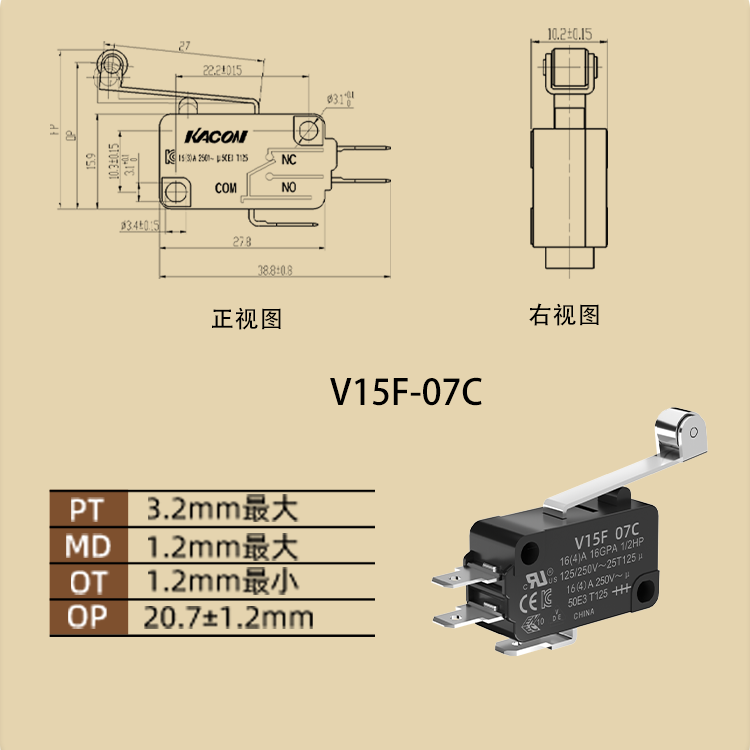 凱昆(KACON)微動簧片采用玻青銅彈性更高、不易變形、導電性更強。